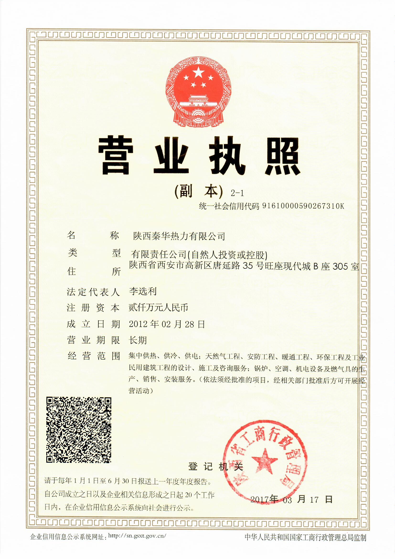 秦华热力纳入西安市市政集中供热行业管理